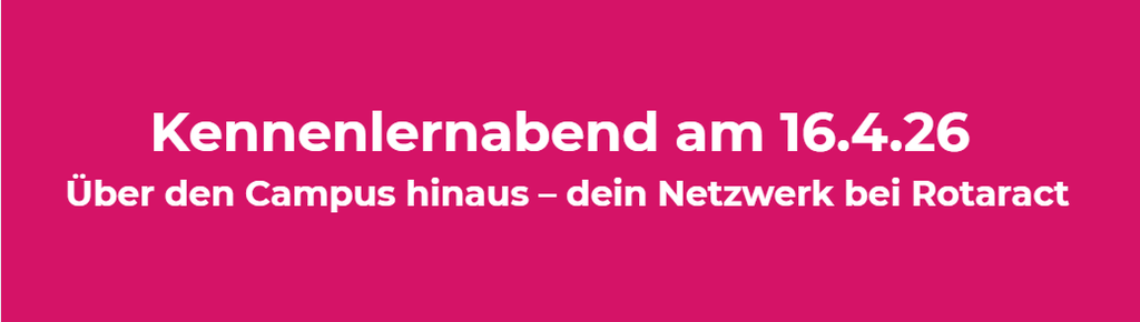 Wir treffen uns jeden Donnerstag in den geraden Wochen ab 19:30 Uhr in Gießen. Schreib uns gerne eine Mail an giessen-vorstand@rotaract.de oder kontaktiere uns über Instagram.